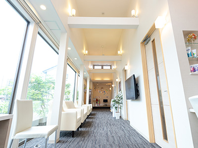 ベビーカーや車椅子の方も安心してご来院いただけるよう、院内はゆったりとしたスペースを確保しています。また、駐車場から診療室までバリアフリーで移動できます。待合室には遊んで待てるキッズスペースもあるので安心です。